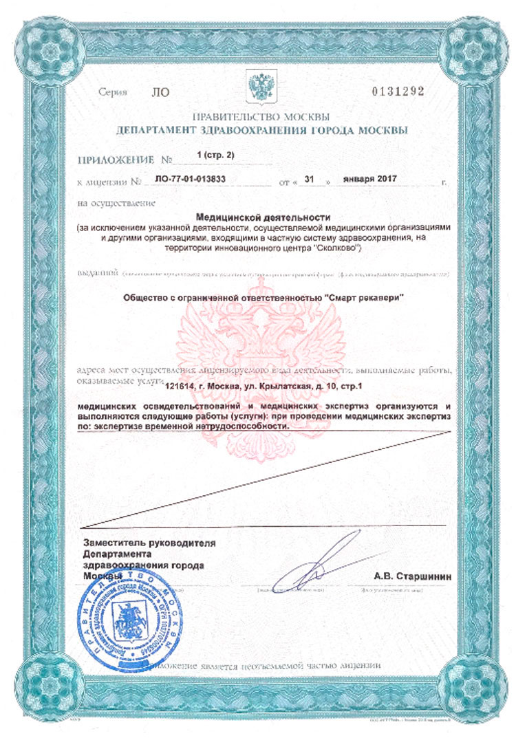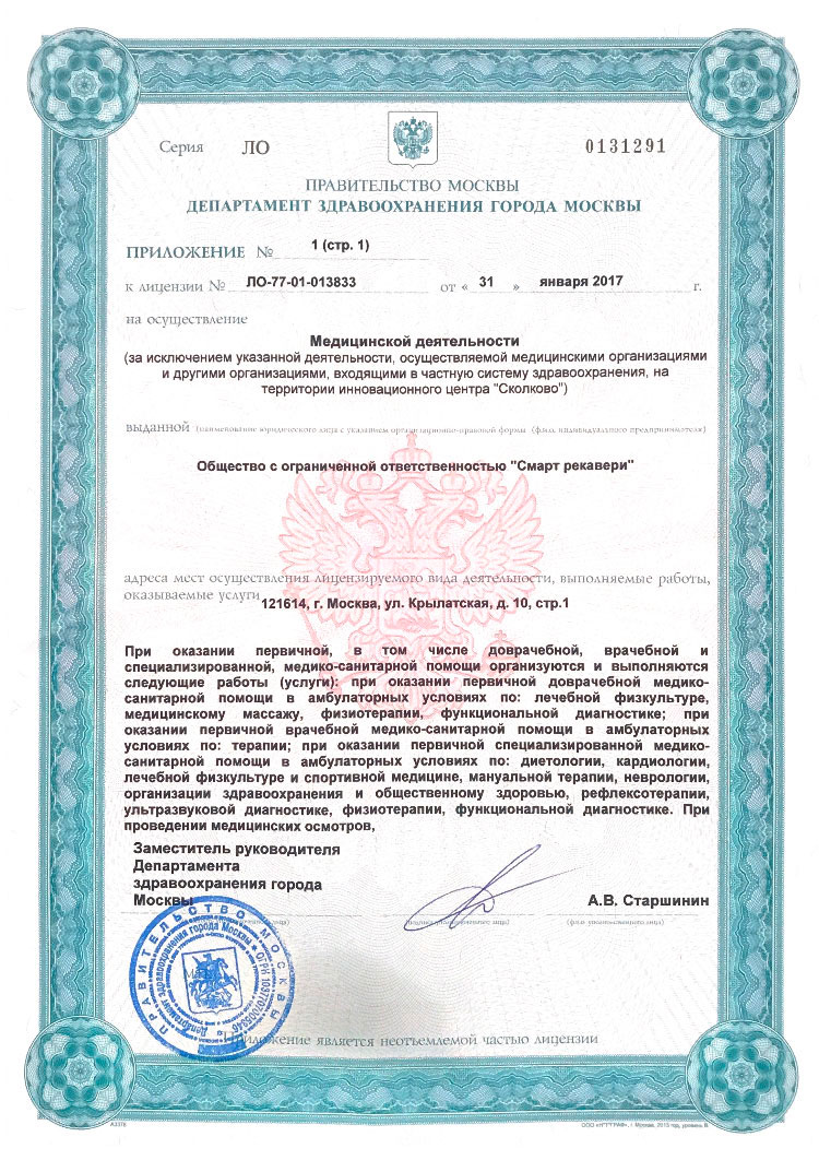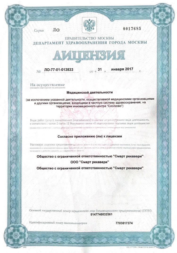 SMART RECOVERY осуществляет медицинскую деятельность на основании лицензии. Ниже представлены официальные документы.
